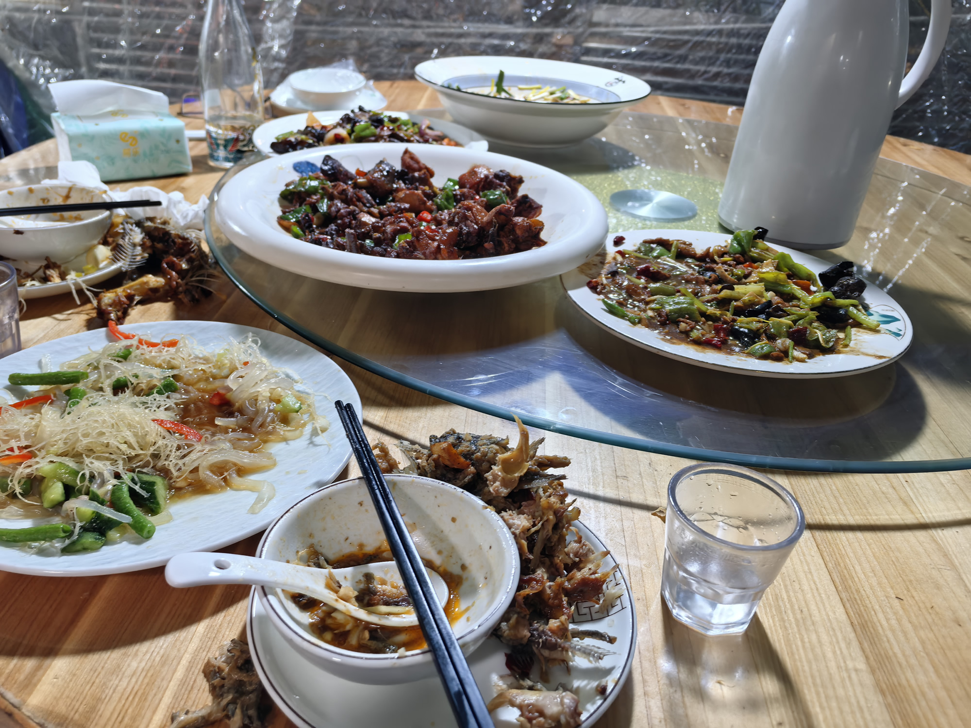 晚上去了一家徐州菜饭店。今天的羊肉串是没排队,但饭店居然排队了,好在口味还不错,队没白排。