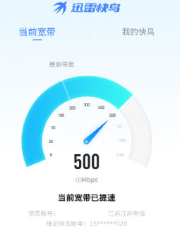 2、点击 页面左侧的 “快鸟宽带提速” 触发宽带提速,页面右侧页面会显示提速结果,参考如下: