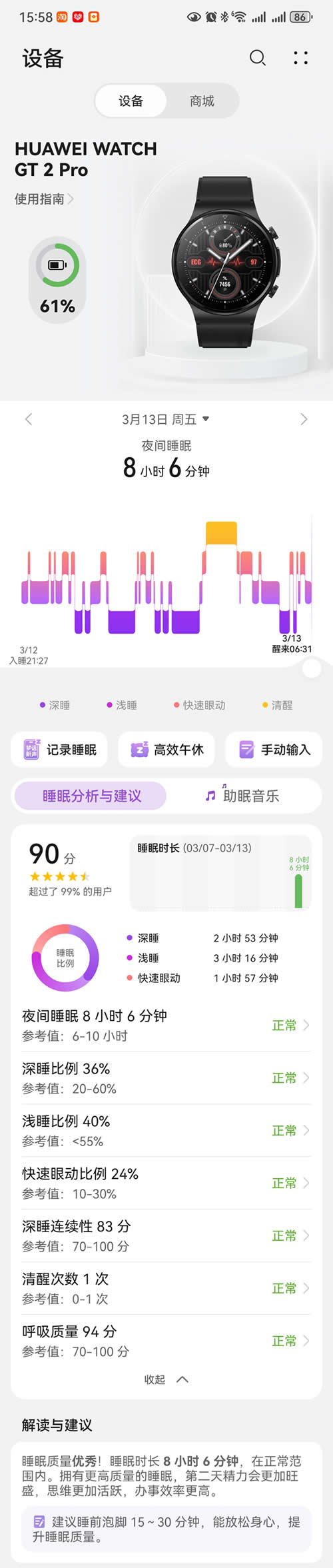 2、睡眠数据居然这么给力,之前可是连数据都很难有的,即便有也都是几十分钟很少超百!