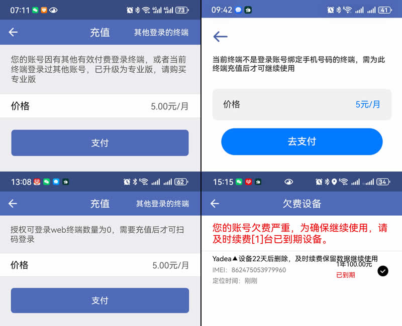 另外一件事情就是给电瓶车换了定位器,之前用的是谷米科技,但是去年下半年开始限制了很多功能、需要使用的话就得额外收费,我有四个定位器结果提示我管理多个设备要开通专业版,分到多个账号单独使用又说一个账号只能登陆一个设备、一个设备也只能登陆一个账号否则就也要开通专业版,我付款之后继续用使用单账号管理多设备,结果登陆网页版还是要额外交钱而且按设备个数收费,当我更换手机的时候提醒我也要额外交钱才能在新设备使用...... 总之,吃相太他妈难看了!
